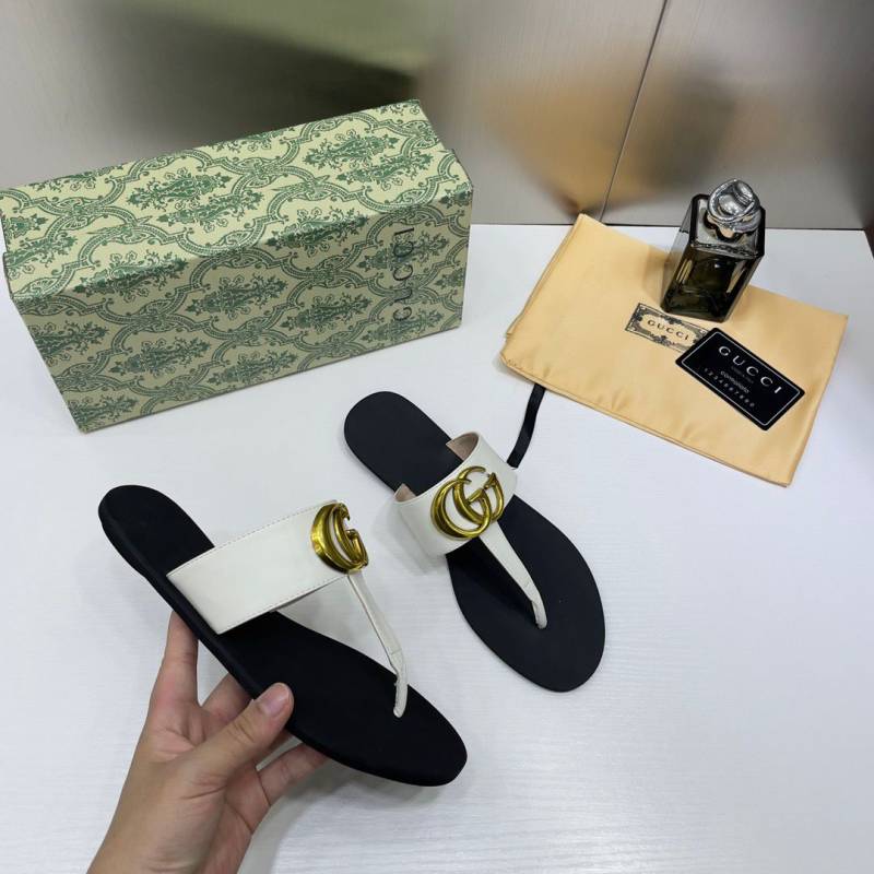 Gucci_Mules_Sandals_Flat_GG_Marmont_Leather_White_HN-3835_With_OG_Box_&_Dust_Cover