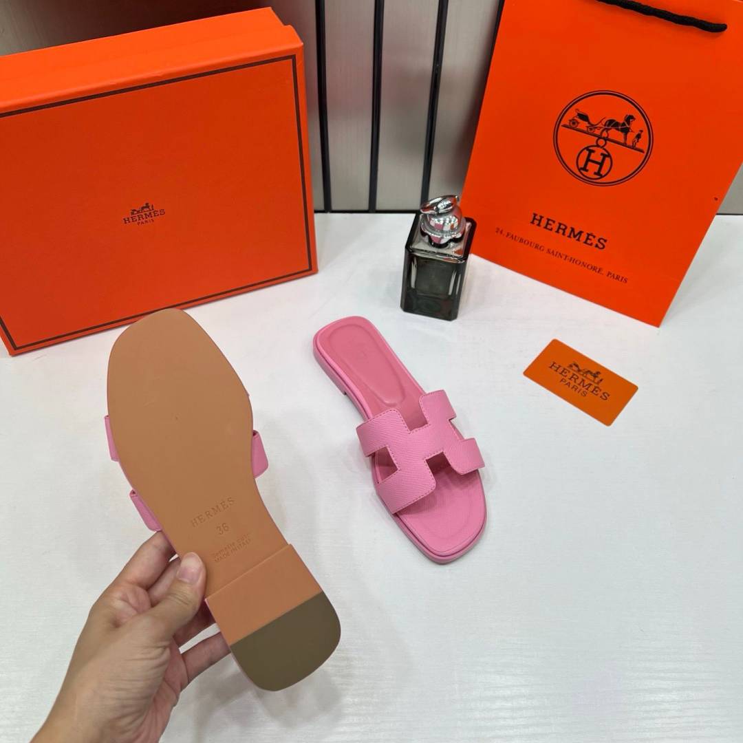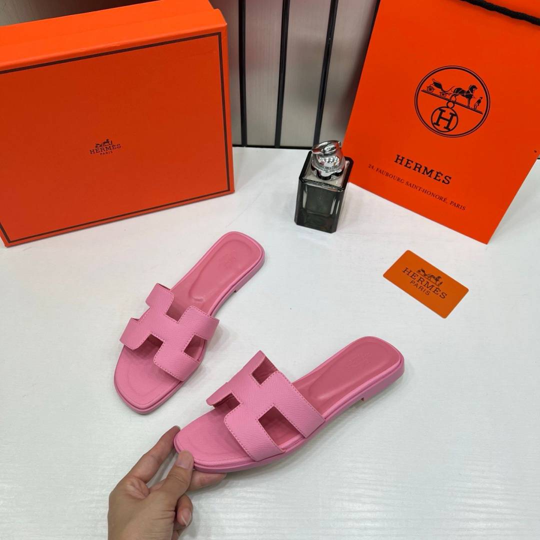 Hermes Paris Oran Flats For Her With OG Box & Carry Bag Pink Slide H38