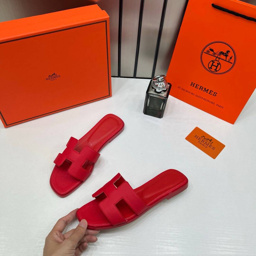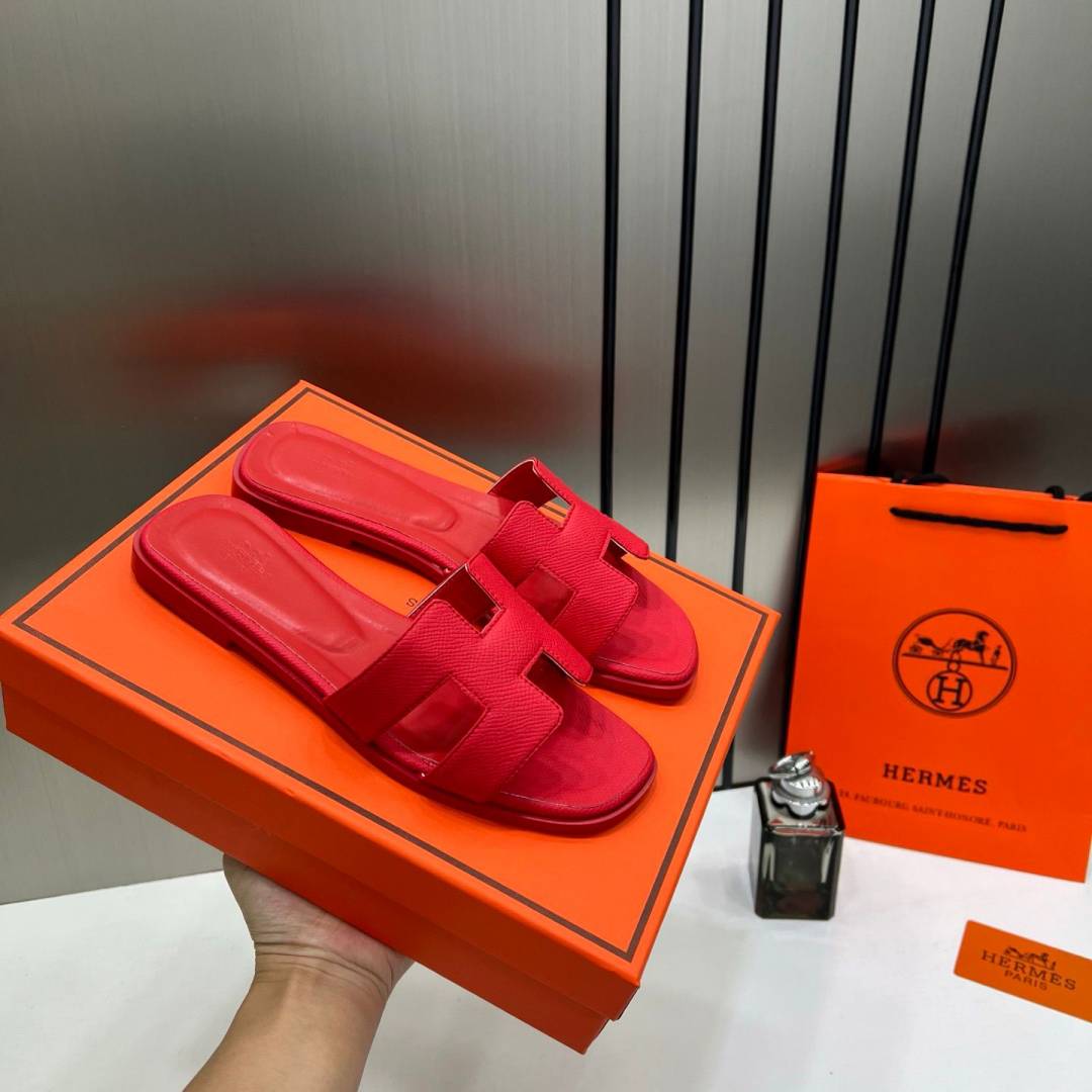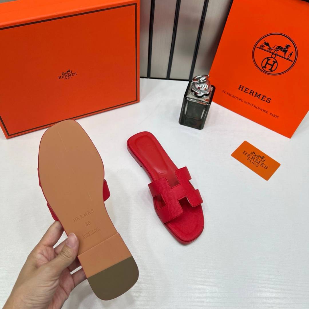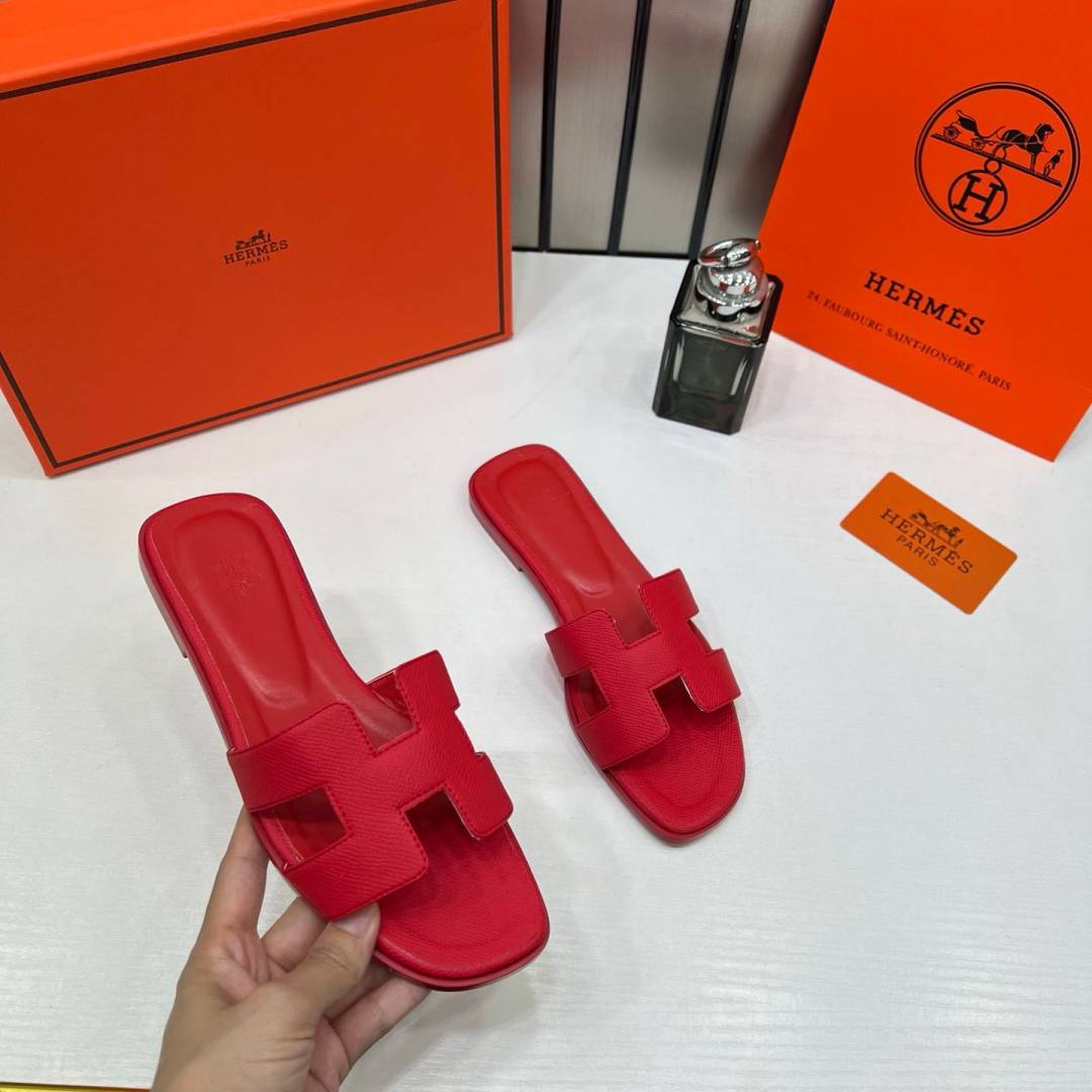 Hermes Paris Oran Flats For Her With OG Box & Carry Bag Watermelon Red Slide H38