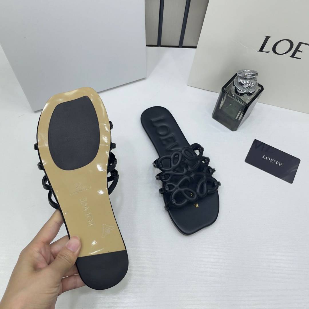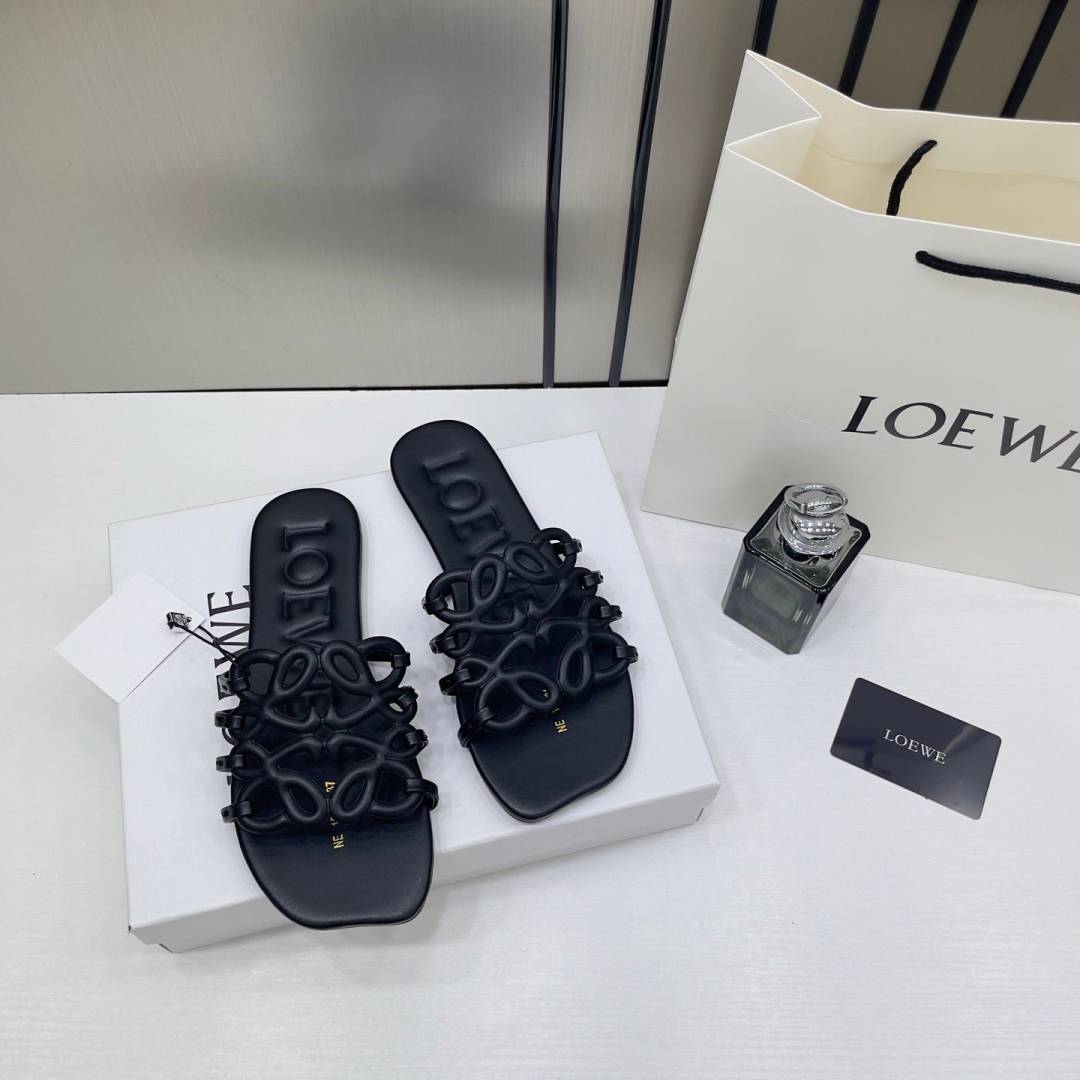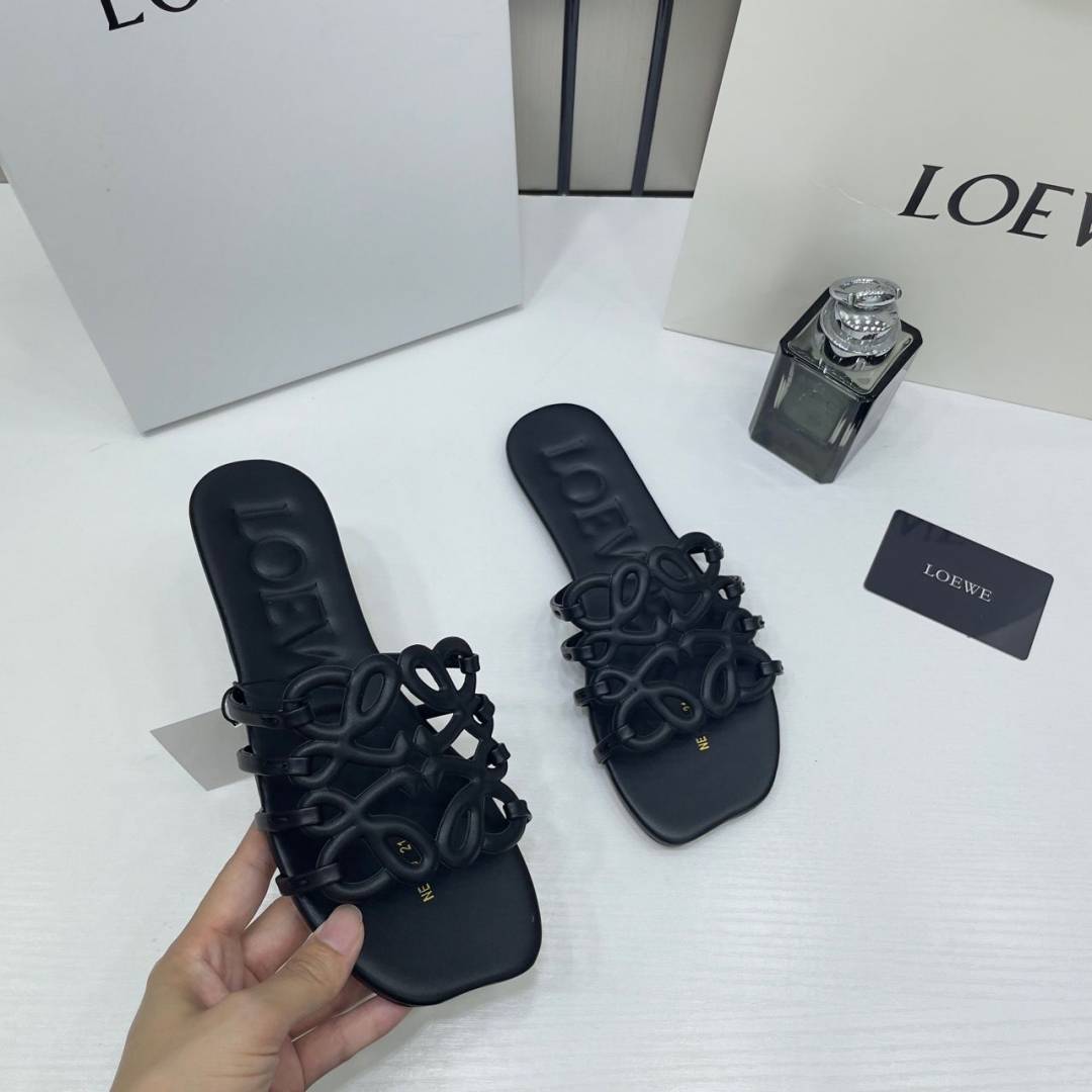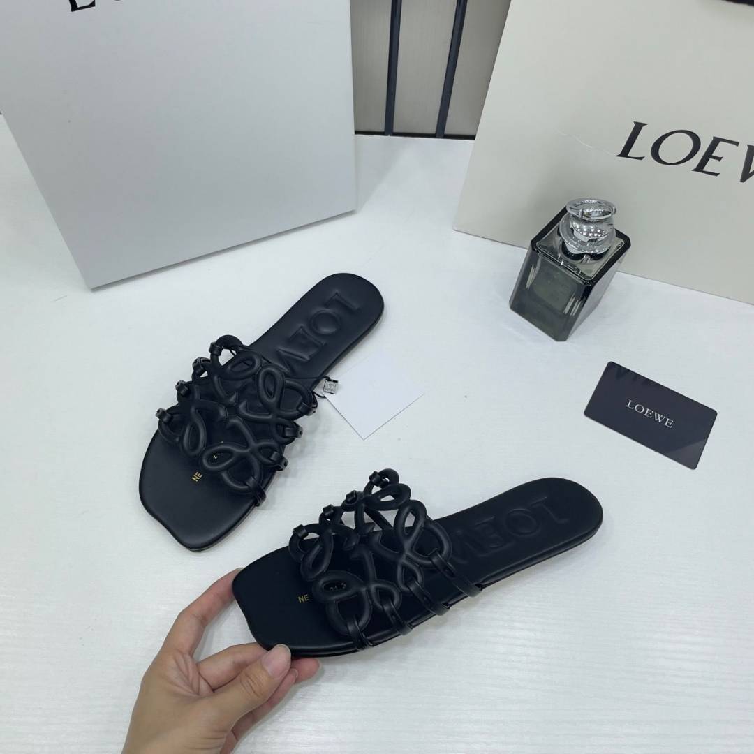 Loewe Petal Anagram Black Slides For Women With Original Box And Dust Cover Black 2506