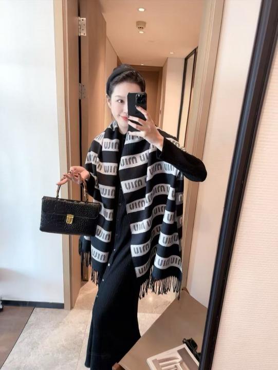 Hermes-Style_H_Monogram_Reversible_Wool_Scarf_in_Black_&_Beige_With_OG_Box_&_Carry_Bag